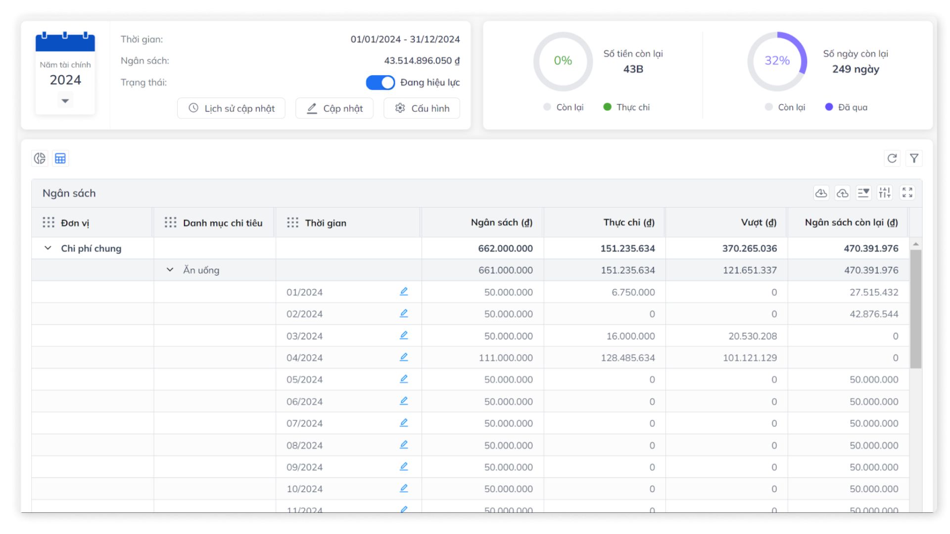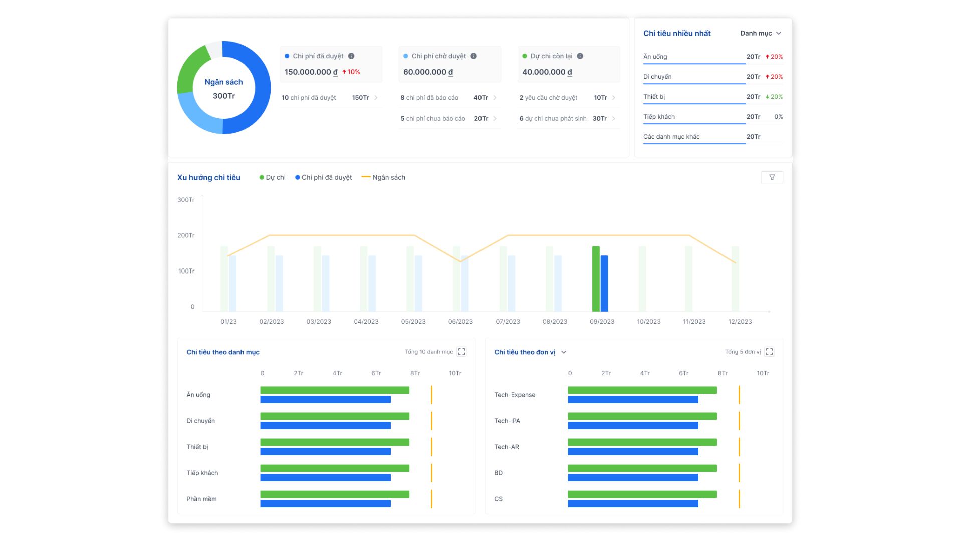 - Kiểm soát và phân tích chi tiêu theo thời gian thực: Từ dashboard trực quan, doanh nghiệp có thể theo dõi ngân sách, phát hiện chi tiêu vượt mức, và chủ động điều chỉnh kế hoạch tài chính.